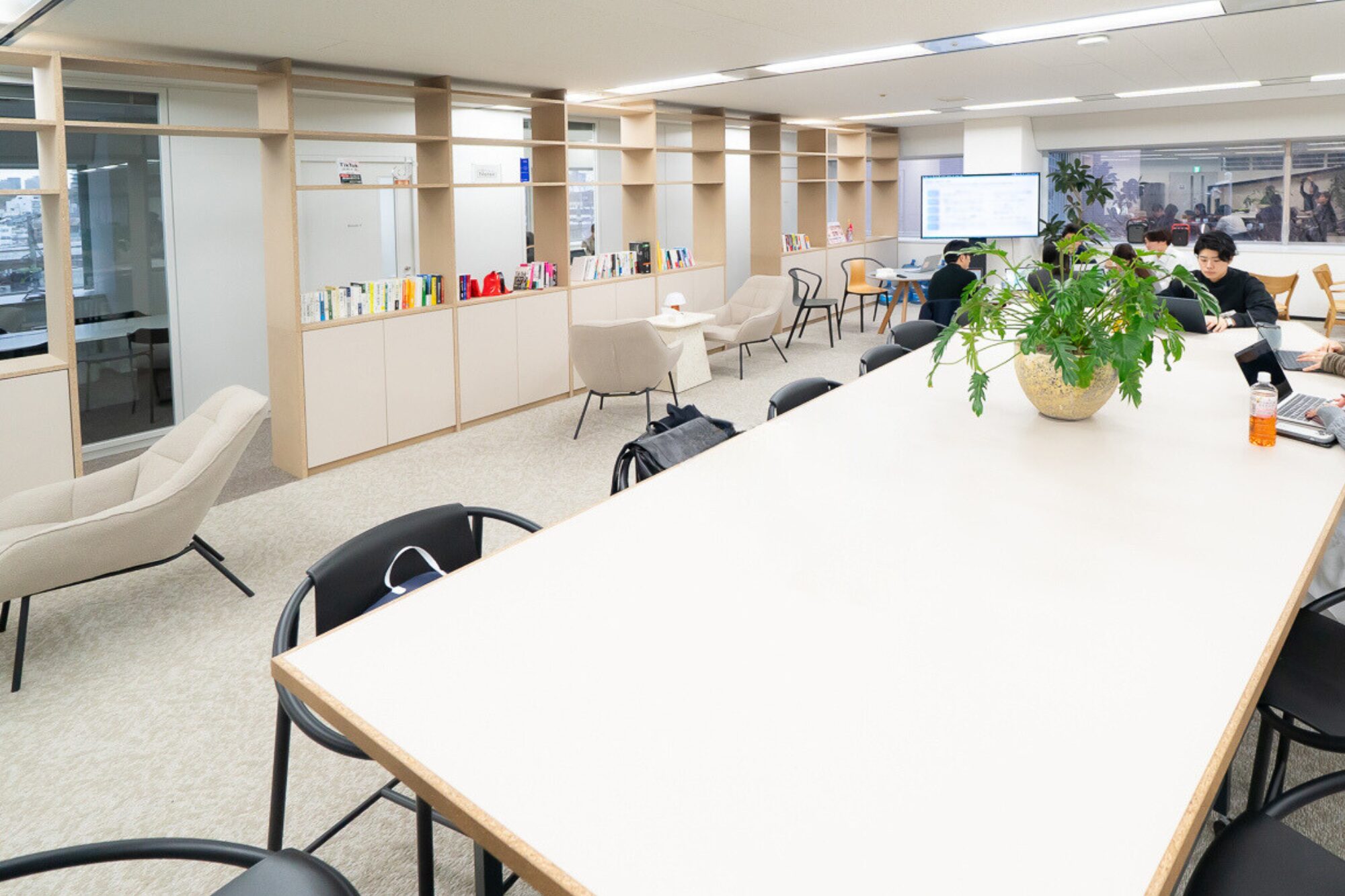 前オフィスに移転した2021年に15名前後だった社員数は、今や60名を超え、2026年度の新卒が加わると70名に届く見込みです。ラウンジエリアに人が集まり、目的ごとにさまざまなグループが点在して仕事をしている様子がもっと見られるように、社内イベントなど出社したくなる仕掛けを増やしたいですね。