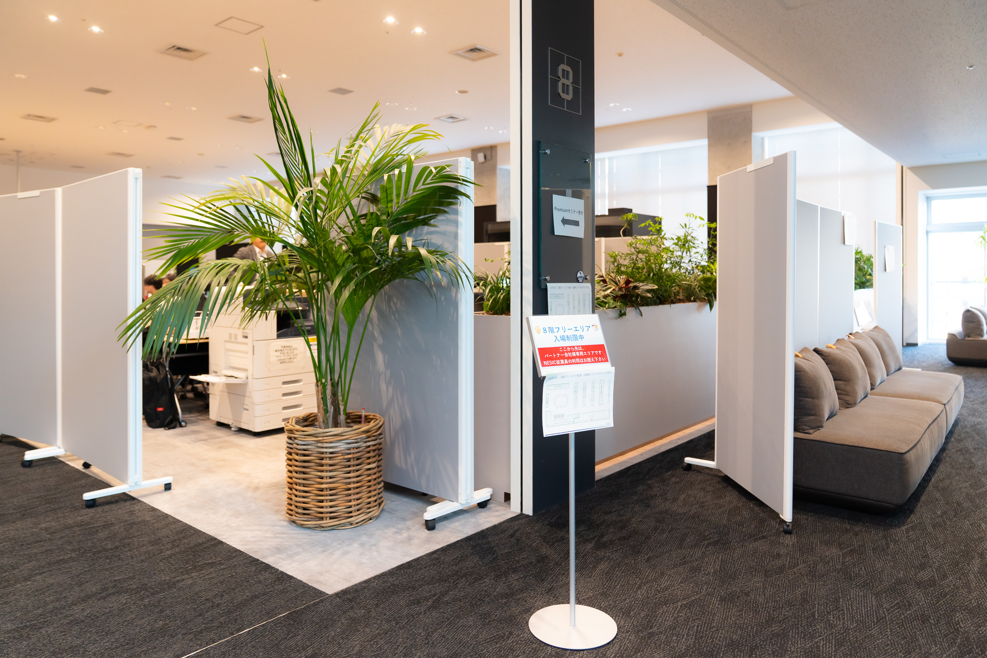 8階は現在、全社プロジェクト用のスペースが設けられています。元はオフィスワーケーションエリアとのこと。1階と同じく、自然を感じられるスペースです。